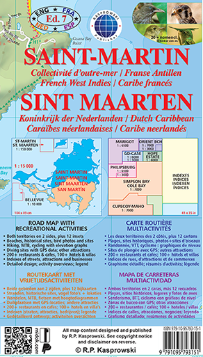 This first and only complete road map with a street index of Saint Eustatius (Statia), Dutch Caribbean, includes hiking trails, diving sites, historic places, national parks, and many other natural features.